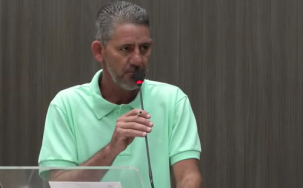 Jadir Pepita, vereador em Campo Mourão, elogiado o prefeito e a união dos vereadores, quando falou da construção de dois poços artesianos em comunidades rurais; na sessão desta terça-feira.