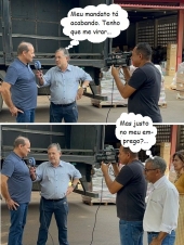 O clic é desta sexta-feira no Corpo de Bombeiros de Campo Mourão, O prefeito Tauillo Tezelli esteve por lá para agradecer o trabalho pelas vítimas das inundações no Rio Grande do Sul. Aproveitou e entrevistou, para a TV Carajás, o empresário que cedeu um caminhão para o envio dos donativos. O repórter (de verdade) Ney Soares, ficou apenas assistindo.
