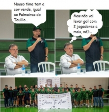 Os cliques são desta terça-feira, quando aconteceu a apresentação do time do ABL/Eliane Futsal, de Campo Mourão, que vai disputar a Série Bronze do Paranaense deste ano. O prefeito Tauillo Tezelli participou. Na foto, quem fala é o presidente da equipe, o empresário Tota Lodi. Detalhe: Tota é corintiano e, Tauillo, palmeirense. Ih, bem na semana daquele 2 a 2...