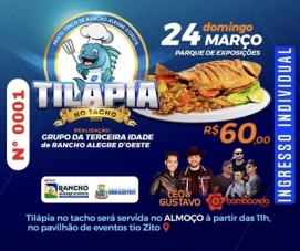 A prefeitura de Rancho Alegre do Oeste confirmou a volta do prato típico na programação da festa pelos 32 anos de emancipação do município. A tilápia no tacho será servida no almoço do dia 24 de março. Os ingressos já estão à venda por R$ 60. A Expo-Rancho será realizada entre os dias 22 e 24. A programação incluiu shows com Jads & Jadson, Fiduma & Jeca e Pedro Paulo & Alex, além de rodeio.