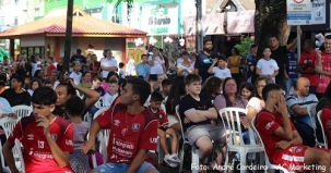 A praça São José foi palco, neste sábado, da entrega de cerca de 300 kits esportivos para crianças e adolescentes de 07 a 17 anos que integram o projeto social Formando Campeões. A iniciativa do Campo Mourão Futsal ocorre desde 2018. Cada kit contém camiseta, shorts, meião, caneleira e tênis. Atualmente são oito núcleos e 13 turmas, que atendem a garotada em contraturno escolar, com a supervisão de monitores.