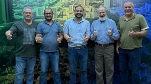 “Bora discutir Campo Mourão?” A frase é do pré-candidato a prefeito Rodrigo Salvadori, em foto postada em redes sociais. Detalhe: das quatro pessoas que estão com ele, duas foram secretários do prefeito Tauillo Tezelli. Quem? Quem? Cristiano Calixto (Fiscalização) e Marcelo Lima (Esporte).