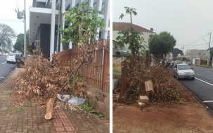 “Na rua Panambi, empresa de recapeamento cortou os galhos há mais de 15 dias. Jogaram os galhos na calçada e assim ficou...”
