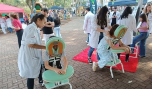 A faculdade Unicampo, de Campo Mourão, participou no último domingo da Feira Criativa – A Avenida É Nossa”, na praça São José. A instituição mobilizou professores e alunos de todos seus cursos de graduação para oferecer serviços gratuitos à população. A equipe do curso de Enfermagem, por exemplo, aferiu a pressão arterial e prestou esclarecimentos sobre o câncer de mama. Já o curso de Fisioterapia atendeu o público com massagem.