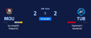 Neste domingo, em casa, empatou em 2 a 2 com o Tubarão/SC.