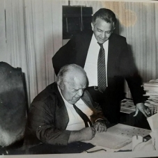 Na foto, Colaço com o então presidente da Assembleia Legislativa, Anibal Khoury, em 1991, na promulgação da lei que emancipou Farol.