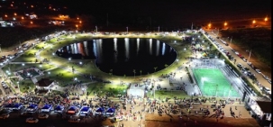 Trecho de postagem da prefeitura de Campina da Lagoa, sobre a inauguração, nesta sexta-feira, da Lagoa Nova. O novo parque urbano custou R$ 1,5 milhão entre recursos do município (R$ 821 mil) e do Estado (R$ 744 mil).
