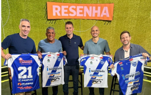 O ex-zagueiro Henrique (Palmeiras, Corinthians, Barcelona, etc) gravou participação no programa Resenha, da ESPN. É o Henrique, que agora é “dono” do Nacional, o time que se mudou para Campo Mourão. Ele aproveitou para dar uma camisa do NAC para os ex-jogadores Fernando Prass, Silas e Fábio Santos, além do apresentador André Plihal.