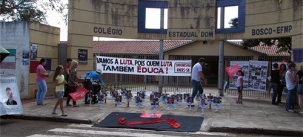 Professores estaduais em greve seguem o calendário de concentrações em frente a escolas de Campo Mourão.