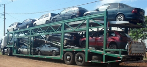 A maioria é carro, mas também há caminhões e ônibus no lote.