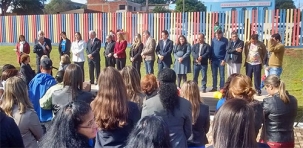 O padre Jiliard Souza foi chamado para dar a bênção à nova Super Creche.