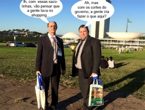 O clic vem de Brasília, onde vários prefeitos da região estão participando da Marcha em Defesa dos Municípios. De Araruna, o vice-prefeito Claudemir Brambilla e o prefeito Fabiano Antoniassi foram juntos, com direito a pose em frente ao Congresso Nacional e tudo. Duro vai ser explicar aos borboletas, na volta, que as sacolas não são de compras no shopping...