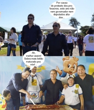 Os cliques são deste domingo, em Goioerê, onde aconteceu a 13a Festa do Leitão Maturado. Nada do governador Beto Richa e de deputados estaduais da base governista desta vez. Na hora da abertura, de político, apenas o deputado federal Sérgio Souza fez companhia ao prefeito Beto Costa. Mais tarde o deputado federal Zeca Dirceu também apareceu. E olha que, como diz a música da festa, "o porquinho é uma delícia"...