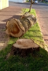 “Árvore foi derrubada há mais de uma semana, na av. Comendador Norberto Marcondes, mas o tronco ainda está no local. Neste caso, a pergunta é a mesma de sempre: será que precisava mesmo ter derrubado essa árvore?”