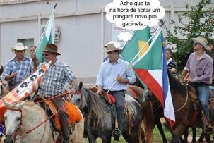 O clic é do último domingo, em Luiziana, onde acontece a 10ª Cavalgada do Descobrimento. Mais de 200 cavaleiros e amazonas, de quatro municípios da região, participaram. O prefeito Mauro Slongo não só cavalgou como levou a bandeira do município. Ah, tá pensando o quê!...