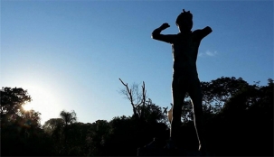 O clic de Osvaldo Broza mostra o que restou do monumento do Parque do Lago. Primeiro levaram o arco e a flecha do índio, junto como parte do braço dele. Agora roubaram até o índio menor, que ficava lado. Deste só sobraram os pés. “Eu só queria tirar umas fotos bonitas, mas o que fizeram com este monumento as deixaram tristes...”, postou Broza.