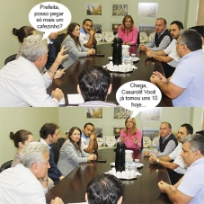 O clic é desta quinta-feira, quando representantes de farmácias estiveram na prefeitura para tratar sobre a regulamentação de vagas de estacionamentos especiais. As farmácias querem vagas especiais rotativas com tempo de até 15 minutos. A prefeita Regina Dubay, o diretor Nelson Casarolli (Trânsito), o coordenador geral Carlos Garcia e o vereador Edson Lima participaram.