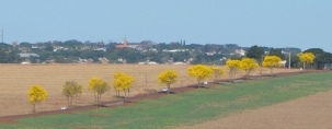 "Ipês amarelos na rodovia Ercides Rossetto, em Ubiratã. Ipês plantados pela equipe do Valdir Dalécio na época em que foi prefeito". Robson