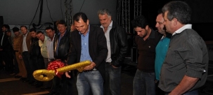 Teve entrega de "chave da cidade" e tudo na solenidade de abertura da 31.a Expomam, em Mamborê. Olha aí o prefeito Nei Calori com a "chavona". Neste sábado tem abertura do rodeio e show com Alysom & Gustavo, tudo com entrada franca. No domingo tem cavalgada (10h) e show com Juliano Cesar (14h30). A festança segue até quarta-feira, quando o município completa 54 anos.