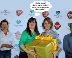 O clic é desta quinta-feira, em Campina da Lagoa, quando a secretária de Estado Fernanda Richa (Promoção Social) foi participar da entrega de cobertores do Provopar. A prefeita Célia Cabrera aprovitou para dar um presentinho à primeira-dama do Estado. Ah, tá pensando o quê!...