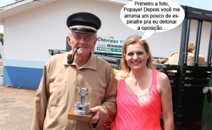 O clic é deste domingo, no Parque de Exposições, onde aconteceu o 2.o Encontro de Carro Antigo de Campo Mourão. A prefeita Regina Dubay esteve por lá e fez pose ao lado do "Popaye", ou melhor, de Silvestre Minikowski, de Faxinal. Ele veio com seu caminhão Chevrolet 1951 e com essa roupa aí, que lembra o personagem dos desenhos animados. Só faltou o Brutus e a Olívia Palito...