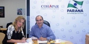 A prefeita Regina Dubay esteve nesta quarta-feira com o presidente da Cohapar, Mounir Chaowiche. Eles assinaram o convênio de implantação de novas moradias em Campo Mourão. Serão investidos R$ 20 milhões pelo programa "Minha casa, minha vida", numa parceria entre prefeitura e os governos federal e estadual, para construção de 360 casas na saída para Goioerê. E que venha a casaiadinha!...