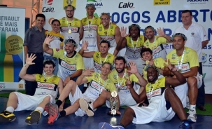 Com o título na fase final dos Jogos Abertos do Paraná, em Cascavel, neste sábado, Campo Mourão fechou o "tríplice coroa" no basquete-m em 2013. Foi campeão da Copa Brasil Sul, do Campeonato Paranaense e, agora, dos Jap"s. Viu só, é o Sebastian Vettel na F-1 e Campo Mourão no basquete...