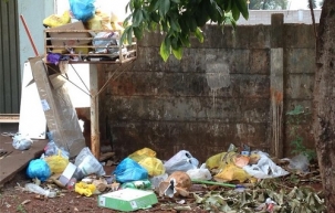 A coleta de lixo é feita três vezes por semana, mas moradores de um condomínio colocam o lixo diariamente ali, não colocando somente no dia da coleta coletiva. Para agravar a situação, os cachorros se encarregam de bagunçar tudo. Márcio
