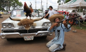 O "Gaúcho Doido", de Nova Londrina, roubou a cena não só com o seu Fairlaine 1959, mas com o galo que lhe acompanha há 14 anos e a espingarda ao estilo Família Buscapé.