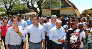 Na passagem por Quinta do Sol, nesta sexta-feira, Beto Richa falou de pavimentação, combate à erosão urbana e a implantação de sistemas de abastecimento de água nas comunidades de Água do Lambari, Serrinha e Pedro Dias. Também anunciou a liberação de recursos para a construção de posto de saúde e de R$ 330 mil para urbanização via PAM. E não podia faltar, é claro, foto ao lado do prefeito João Claudio Romero e com alguma criancinha da cidade...