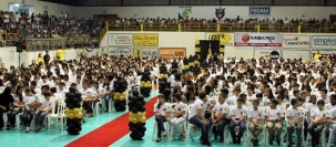 Ginásio de esportes do Lar Paraná superlotado nesta quinta-feira para a formatura do Programa Educacional de Resistência às Drogas - Proerd. Pudera. Eram 750 formandos e cerca de 1.500 pães e mães. De político presente, só o ex-prefeito Nelson Tureck, que representou a deputada-filha Marla Tureck. A prefeita Regina Dubay foi representada pela secretária Karla Tureck (Educação). Aí, é claro, Tureck discursou e fez a festa. Ele quase não gosta...