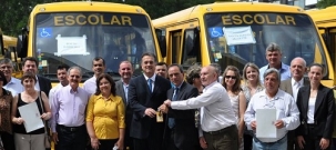 Campina da Lagoa - Dos 115 ônibus entregues pelo governo a escolas especiais do Paraná, nesta terça-feira, todos foram repassados às prefeituras, que depois os entregará às Apaes. Todos menos um! Para Campina da Lagoa, a entrega foi feita diretamente à Apae. Tanto que a diretora Lucila Celestiva Giaretta esteve por lá com o governador. O deputado Plauto Miró participou da entrega.