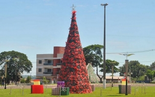 Árvore de Natal colocada no início da av. Mauro Mori, em Goioerê. A iluminação natalina foi acesa nesta sexta-feira.