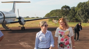 A ministra Gleisi Hoffmann chegou a Campo Mourão neste sábado em avião da FAB.