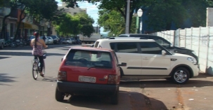 "Depois das reclamações, a prefeitura foi lá e demarcou o estacionamento correto da rua Araruna, na esquina com a av. Capitão Índio Bandeira, mas os motoristas continuam abusando. Na foto acima, apenas o Uno estaciona corretamente, enquanto os demais veículos param sobre a calçada".