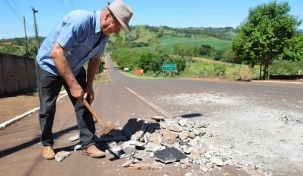 A foto é da Coluna do Rato. Eugênio Warquem cansou de esperar que os responsáveis fossem retirar um acúmulo de concreto deixado durante restauração do DER na PR-459, entre Barbosa Ferraz e Corumbataí do Sul. Pegou as ferramentos e fez o serviço. Segundo ele, os motoristas eram obrigado a desviar pela contramão, provocando risco de acidentes.