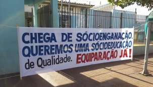 Trabalhadores do Cense de todo o Estado iniciaram uma mobilização nesta quarta-feira. Em Campo Mourão tem faixa colocada em frente à unidade. O Cense é o local onde ficam internados os adolescentes com problemas com a lei.