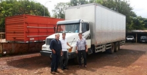 Juranda - A prefeitura acaba de ganhar um caminhão baú da Receita Federal de Foz do Iguaçu. O prefeito Bento Batista foi pessoalmente buscar o Mercedão, junto com o presidente da Câmara, Claudemir Hernandes, e o secretário Valdir Correia. Segundo Batista, se fosse comprado, o caminhão custaria cerca de R$ 170 mil.