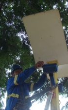 Nesta terça-feira, dois caminhões e quatro homens foram à av. John Kennedy instalar as novas "luzes .