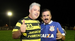 O deputado Douglas Fabrício tá virando freguês do Corinthians. Em dezembro, ele reforçou o time de Ubiratã contra os másters do Timão e não deu. Derrota dos ubiratanenses. Neste sábado, ele foi para o time de Campo Mourão, mas os corintianos ganharam de novo (2 a 0). Ao menos restou a sessão tietagem com foto ao lado de Zenon. E vai que, numa dessas, o Zenon explicou o segredo para manter o cabelo (e o bigode) tão pretinhos...