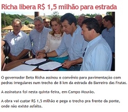 Esse é aquele convênio que o governador Beto Richa assinou em Campo Mourão, em outubro (foto).