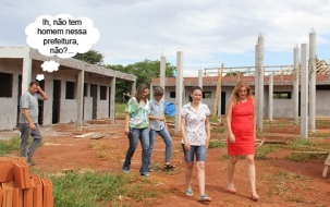 O clic é desta sexta-feira, quando a prefeita Regina Dubay foi dar uma olhada nas obras da Escola do Campo Manoel da Nóbrega, na comunidade do Km 128. A secretária Karla Tureck (Educação) e diretora da escola, Maria Rosa Naida Istchuk, acompanharam a prefeita. A nova escola terá 727 m2 e vai custar R$ 861,6 mil.