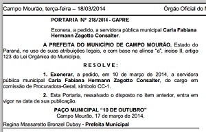 A advogada Carla Zagotto pediu demissão da Procuradoria Geral de Campo Mourão.