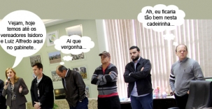 O clique é desta quinta-feira, na gabinete da prefeita Regina Dubay, quando foi assinado o contrato para os 7,5 km de pedras irregulares na estrada da Fazenda Boa Esperança. Os vereadores Isidoro Moraes e Luiz Alfredo estiveram presentes. Cá pra nós: não é todo dia que esses dois "nobres edis" vão ao gabinete, hein?...