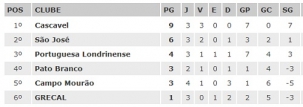 Assim, o Grecal perdeu os três pontos que tinha obtido com o WO frente ao time de Santo Antonio da Platina.