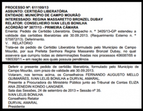 A prefeitura de Campo Mourão tem certidão negativa do Tribunal de Contas do Estado. Pelo menos até o próximo dia 30. A certidão liberatóriafoi publicada nesta quinta-feira no “Diário Eletrônico” do TC. Segundo o órgão, a prefeitura mostrou que cumpriu as determinações previstas em processos que resultaram nas pendências. Portanto, até segunda-feira tá garantido...