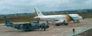 O clic vem do Facebook e mostra, no aeroporto de Maringá, os aviões usados pela presidenta Dilma Rousseff para chegar a Campo Mourão. Ela veio de Brasília a Maringá com o “grandão” (branco) e depois pegou o menor (verde, da FAB), para chegar à “terra do carneiro no buraco”. Portanto, a presidenta chegou em avião da Força Aérea e não em helicóptero, como se divulgou de início.