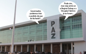 O clic é desta quarta-feira, em frente ao Palácio Iguaçu, a sede do governo do Paraná, em Curitiba. Quando os prefeitos da região chegaram para a reunião com o governador Beto Richa, foram recepcionados com essa faixa de “Paz”. E aí, era para a prefeita Regina Dubay e o deputado Douglas Fabrício? Ou será para a Regina Dubay e o presidente da Comcam, Cláudio Gotardo (Boa Esperança)?...
