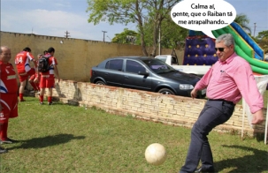 O clic é deste sábado, em Fênix, onde a Acamdoze promoveu o segundo torneio de futebol suíço do ano. O deputado Douglas Fabrício esteve por lá, mas não se arriscou a entrar em campo, não. Só mostrou suas habilidades com a pelota diante da equipe de Ubiratã. Quem aparece observando o deputado aí na foto é o vice-prefeito Sebastião Beraldo. Ah, craque quando pega na bola dá até gosto de ver...