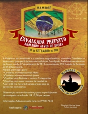 Mamborê – Acontece neste sábado (9h30) a cavalgada “Prefeito Armando Alves de Souza”, com saída do CTG. O passeio faz parte da programação de aniversário do município. Para quem participar haverá almoço a R$ 10. Mais informações: (44) 9978-7340.